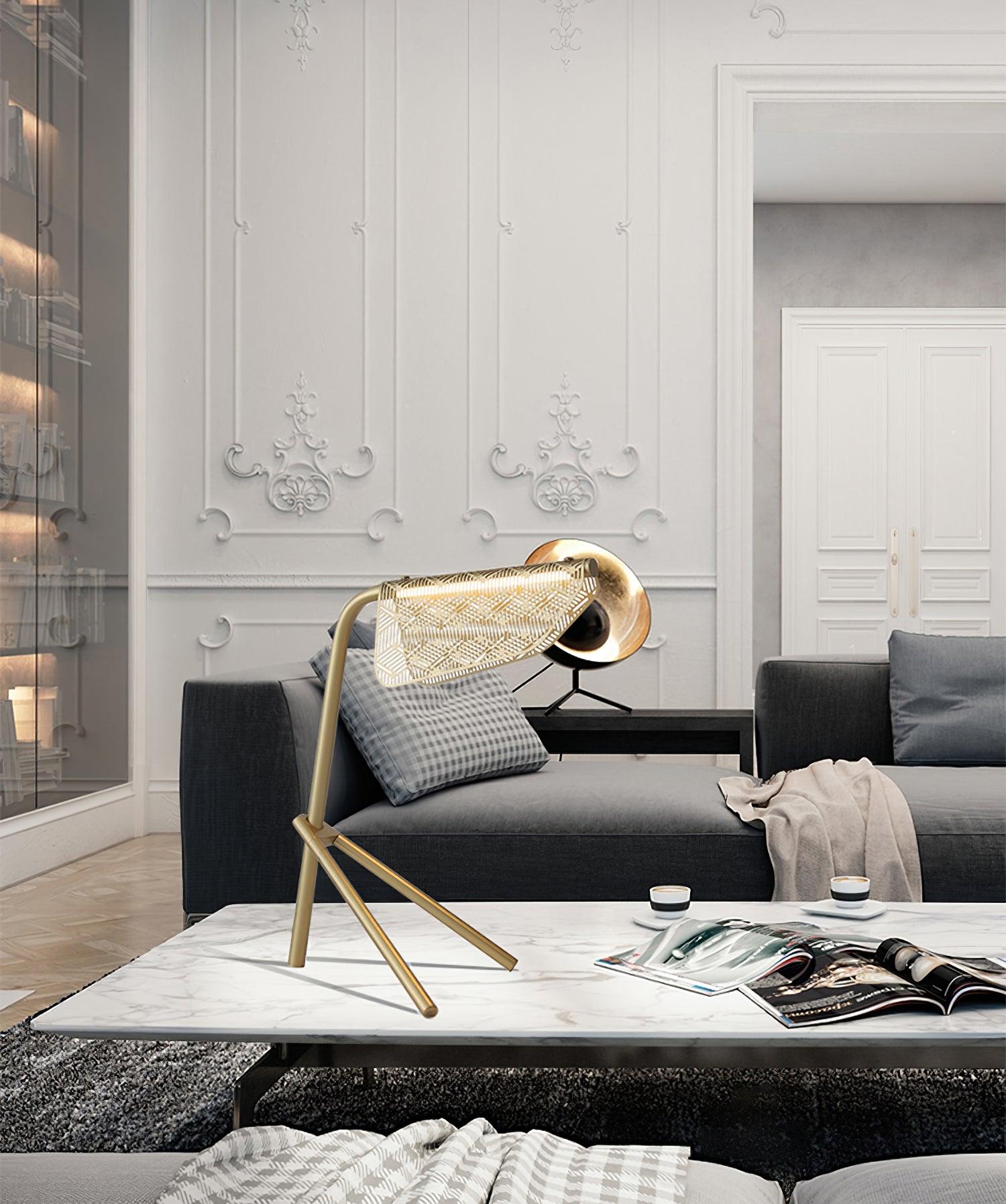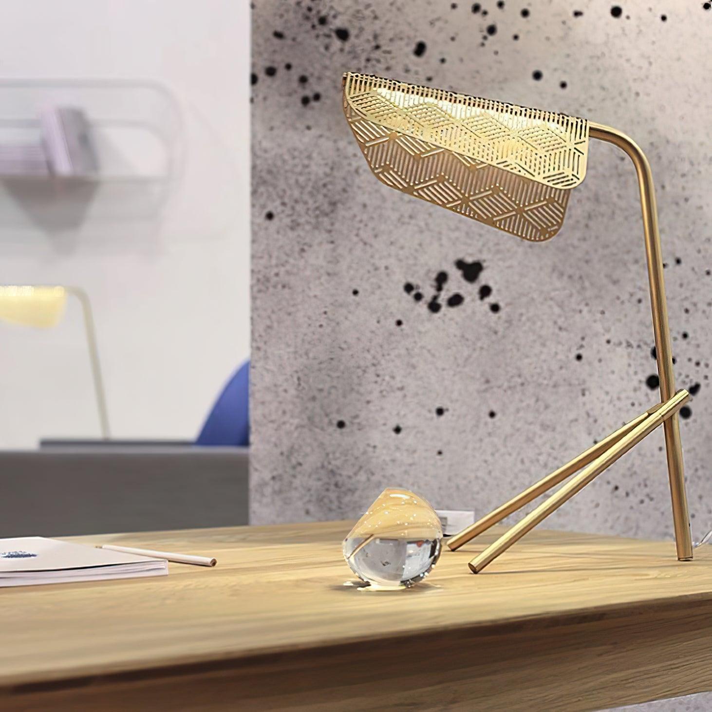 Inspired by the weightlessness of "laundry billowing on Mediterranean balconies", The light designs Mediterranea, a series of lights in Electroplating gold and LED. Resting on a light structure, the cloth of metal sculpts and diffuses the light through the lively and geometric pattern.