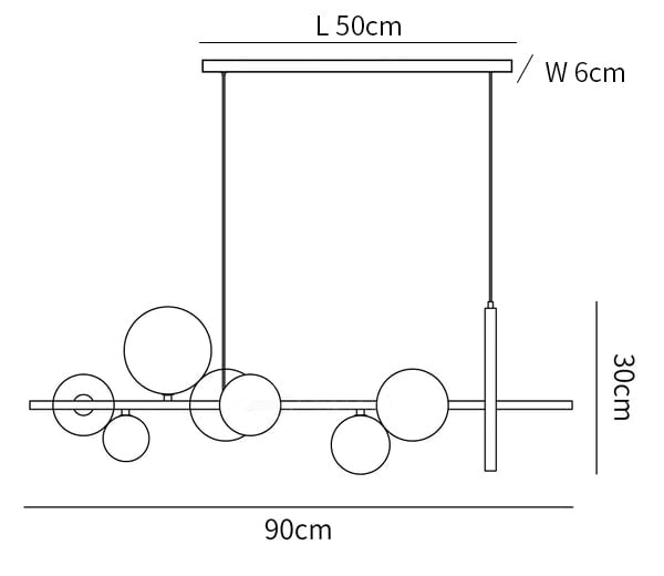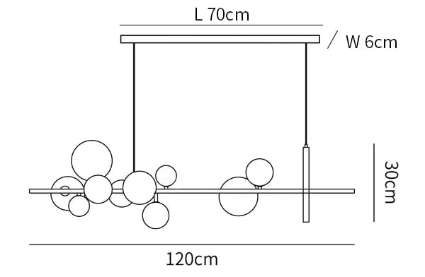 When it comes to lighting in the Scandinavian style, the reduced form and simple design are precisely the main features of the lamps. Our Glass Bubble Nordic Chandelier has striking glass balls as the dominant detail, which brings a modern design to any living room. The light combines a thin luminous LED circle and linear elements on which the glass lampshades are located.