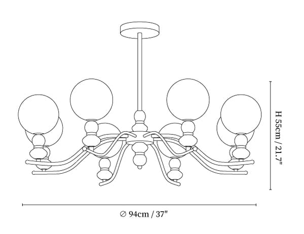 8 heads Size: Dia 94cm x H 55cm / ∅ 37″ x H 21.7″