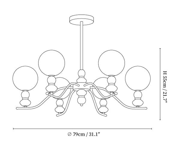 6 heads Size: Dia 79cm x H 55cm / ∅ 31.1″ x H 21.7″