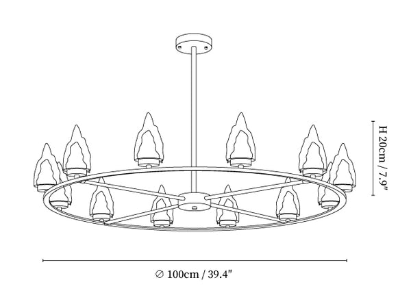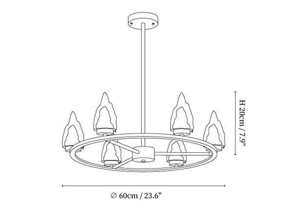 The Mountain Peak Chandelier features sharp, crystal-like elements arranged to mimic the rugged peaks of a mountain range. This bold and striking design brings an adventurous and dramatic flair to any space, perfect for living rooms or grand entrances.