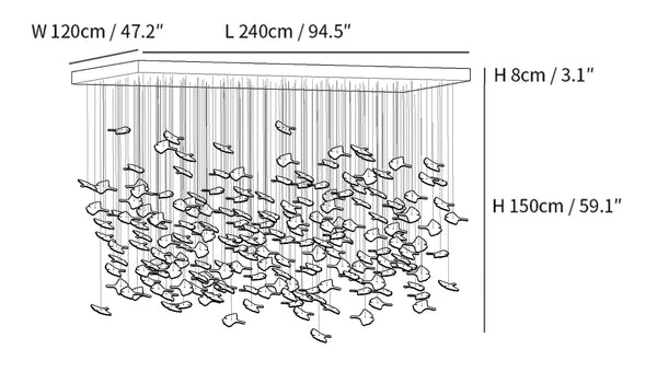 59″ Adjustable hanging height cable, which can be lengthened as required.