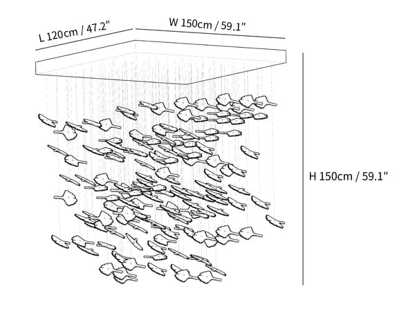L 120cm x W 150cm x H 150cm / L 47.2″ x W 59.1″ x H 59.1″ (Maple leaf quantity: 165 pieces)