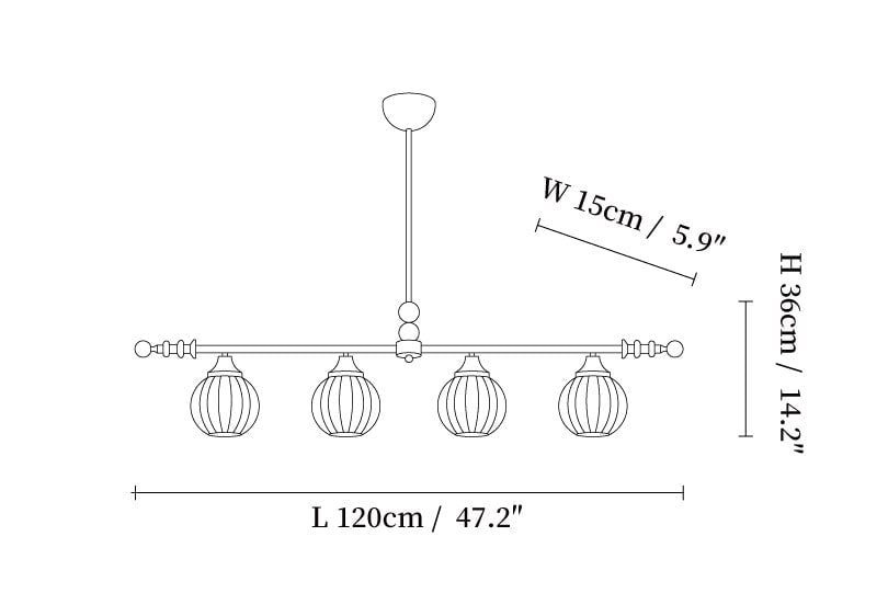 4-lights Size: L 120cm x W 15cm x H 36cm / L 47.2″ x W 5.9″ x H 14.2″