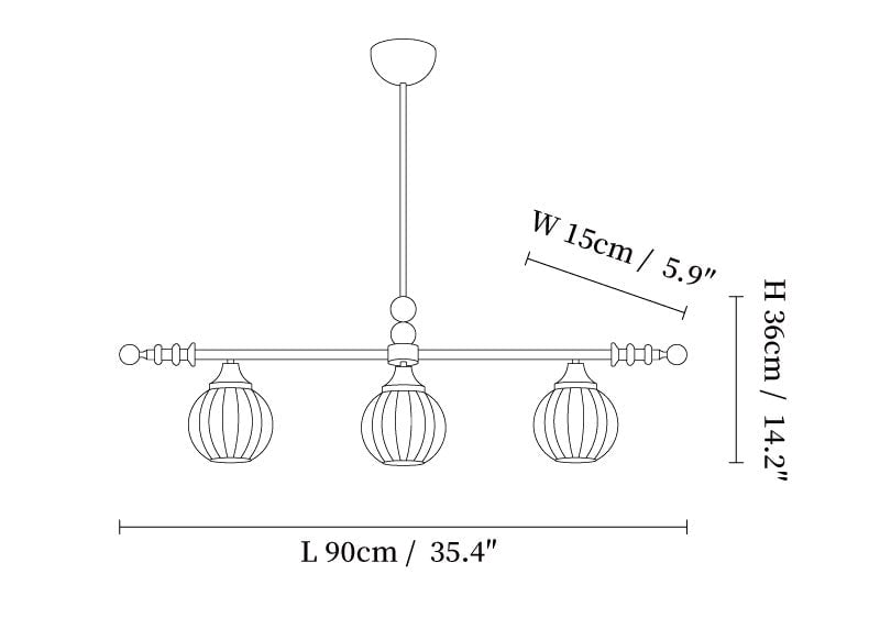 3-lights Size: L 90cm x W 15cm x H 36cm / L 35.4″ x W 5.9″ x H 14.2″