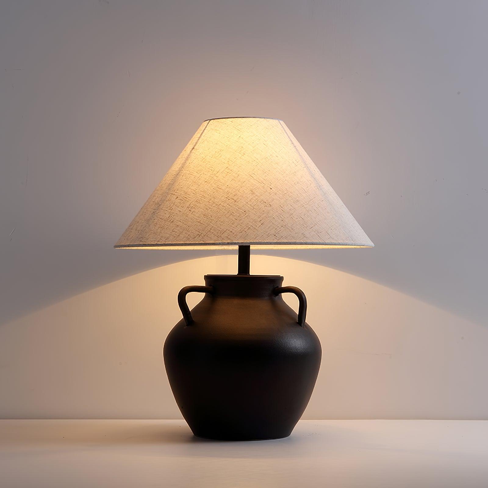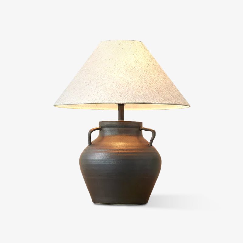Lamp made of black old wine pot with two thin ears on either side. Used in late Qing dynasty as kitchen pots for water, oil and food.