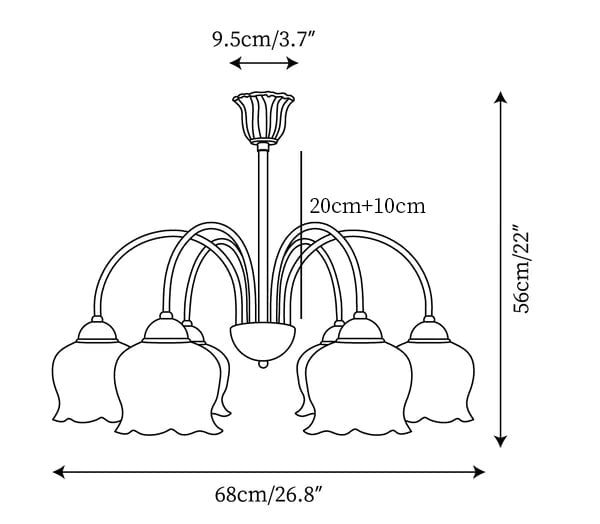 6 Heads Size: Dia 65cm x H 56cm / ∅ 25.5″ x H 22″