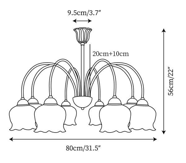 8 Heads Size: Dia 80cm x H 58cm / ∅ 31.4″ x H 22.8″