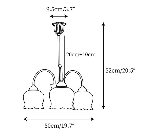 11.8″(7.9″+3.9″) Adjustable hanging height rod. Can be extended upon request.