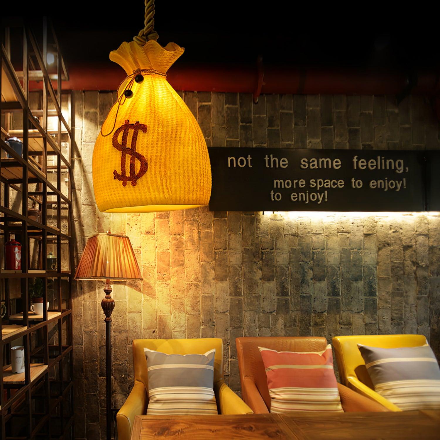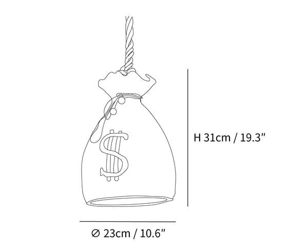 Celebrate abundance and good fortune with our "Prosperity Pouch Resin Pendant." This unique lighting fixture draws inspiration from the traditional symbol of wealth in many cultures, resembling a money pouch complete with the Chinese character for "yen" emblazoned on its surface.