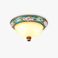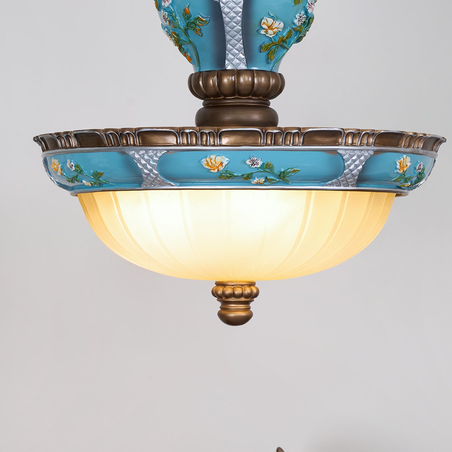 Experience classic elegance with this Retro Floral Resin Recessed Ceiling Light. This piece combines a classic white glass shade with a vibrant blue finish for a timeless look. Perfect for adding a touch of luxury to any space.