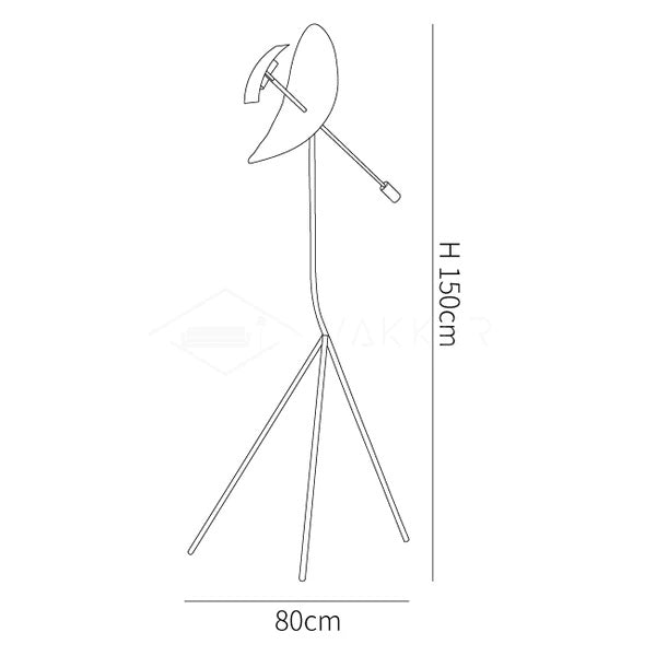 Sculptural yet delicate, this stunning floor lamp features a shimmering oval-shaped diffuser made of hand-hammered brass balanced on a tripod metal base finished in stainless steel. Placed on a slender stem cutting across the center of the lampshade, a slightly curved rectangular strip houses the light source, casting vibrant, rippled reflections evoking water.