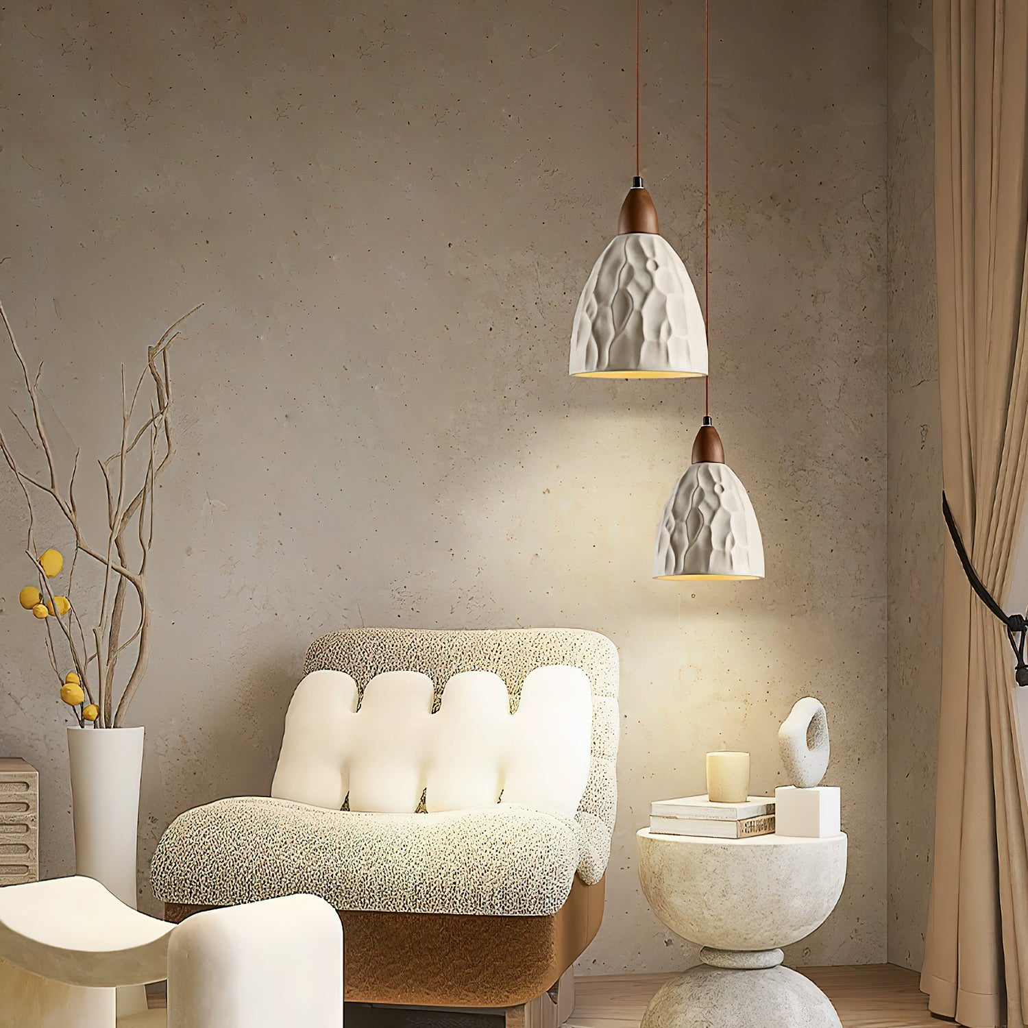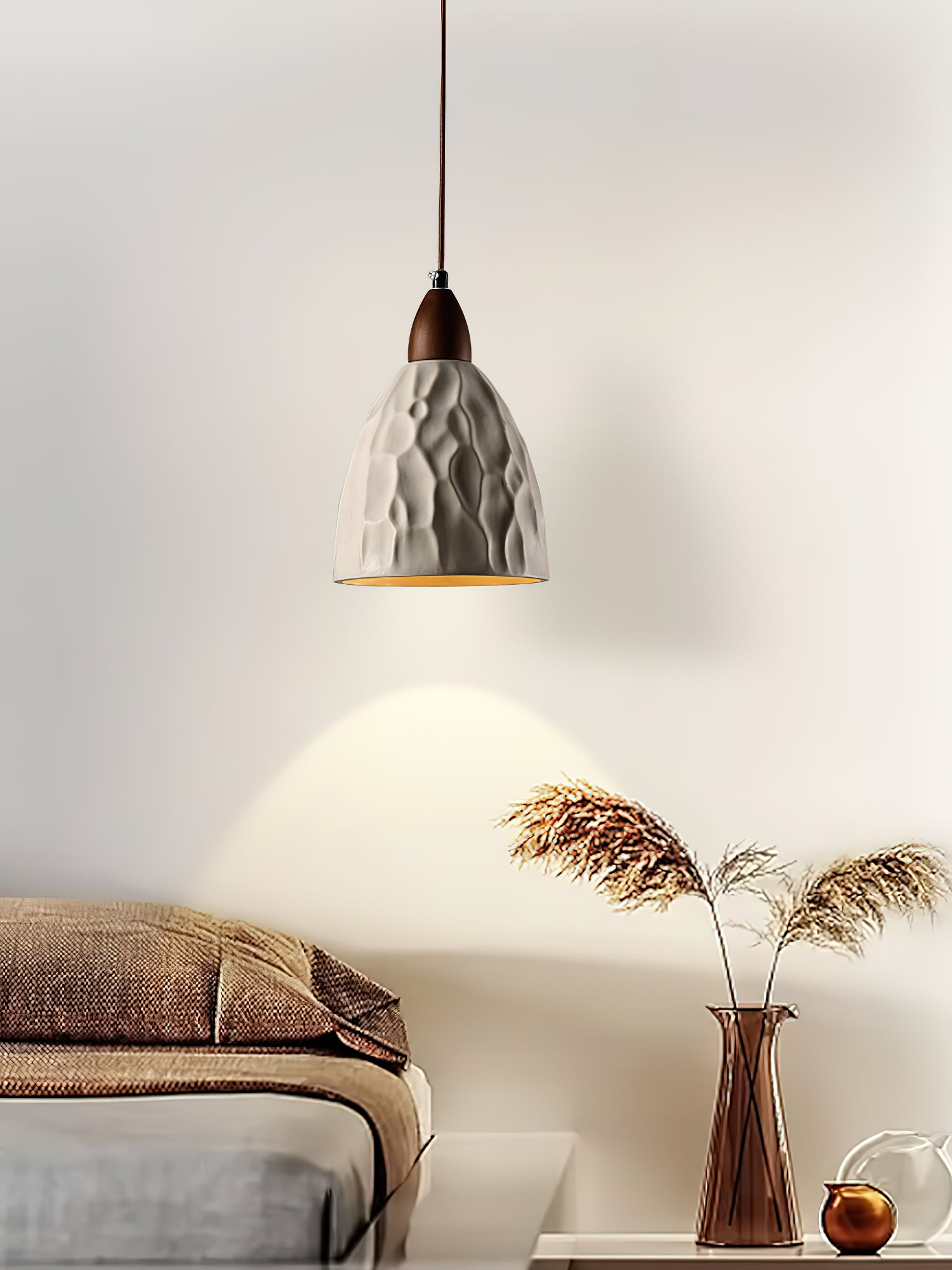 The design of this lamp is inspired by the beauty of ripples on the water surface in nature. The ripple texture flows elegantly on the carefully crafted cement lampshade, bringing visual comfort and dynamic beauty. Every detail shows ingenuity, perfectly combining simplicity and nature. Whether hanging in the dining room, living room or bedroom, the ripple pendant lamp can add a touch of art and modernity to the space.