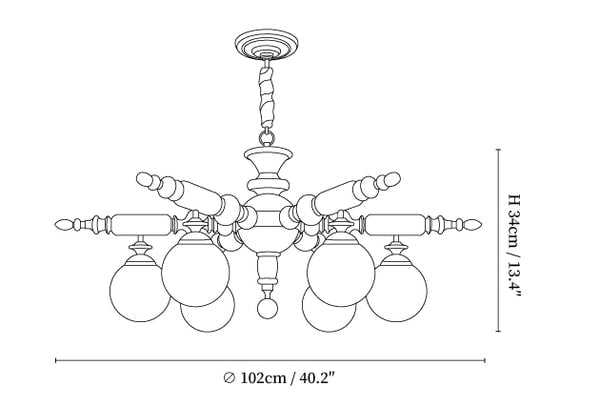 6 Heads: Dia 102cm x H 34cm / ∅ 40.2″ x H 13.4″