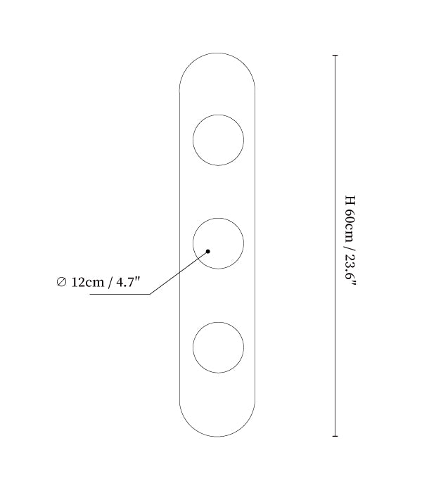 3-Lights Size: Dia 12cm x H 60cm / ∅ 4.7″ x H 23.6″