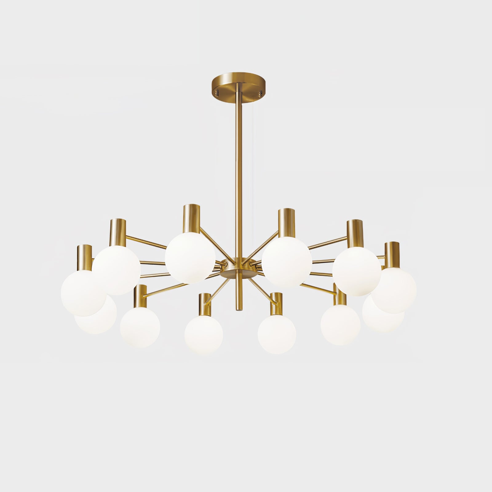 Lit or unlit, the Selva Chandelier radiates elegance and lightness into your lounge or dining room. Its clean-lined base with gold finish gives this lustrous crown a modern look, providing a subtle contrast to the twelve mouth-blown glass lampshades, that were created by skilled artisans. This will surely add an eclectic touch to your home.