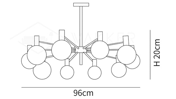 10 Heads size: Dia 96cm x H 20cm / ∅ 37.8″ x H 7.9″