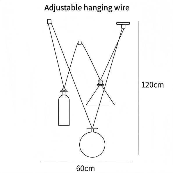 59″ Adjustable hanging height cable, which can be lengthened as required.