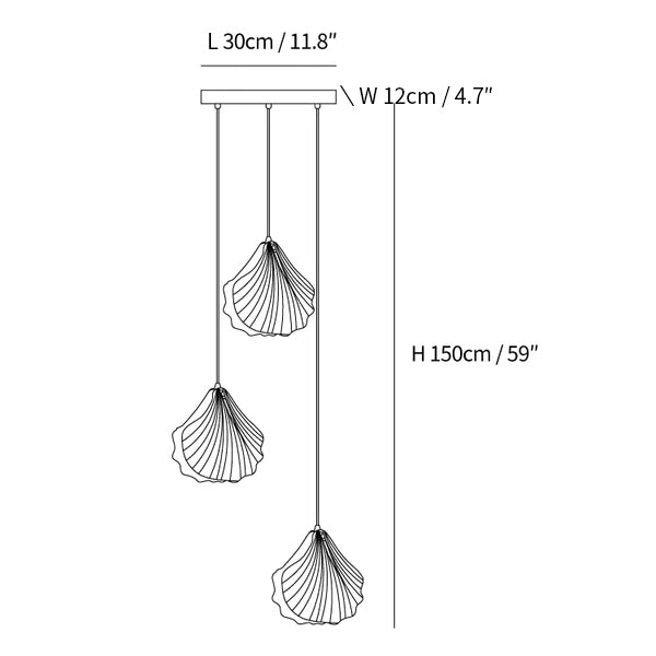 3 heads Size: L 30cm x H 150cm / L 11.8″ x H 59.1″