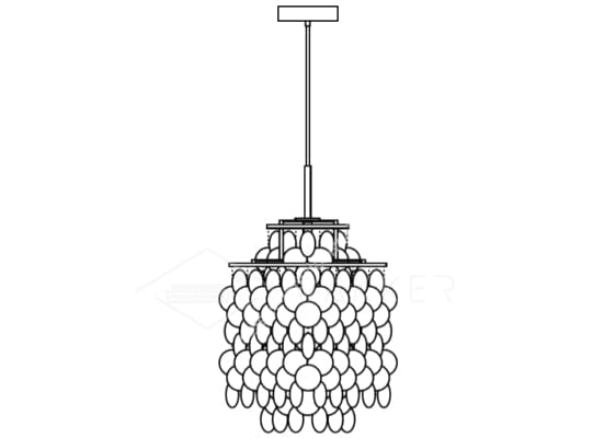 The high-gloss chrome-plated frame of the Round Shell Chandelier Lamp has metal rings of different sizes, increasing from top to bottom. Shell disc chains of different lengths are hung on these rings. Round Shell Chandelier, The translucent surface of the shell disc acts as a light filter and reflection. The ceiling and walls are bathed in an interesting game of light and shadow.