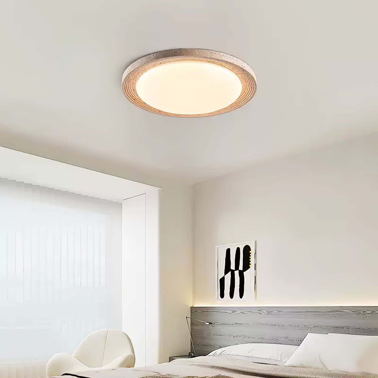 The Soluna Ceiling Light by Lighting merges natural travertine with a uniquely textured design, creating a stunning centerpiece. Its warm, diffused glow enhances any space with a touch of organic sophistication and modern charm.