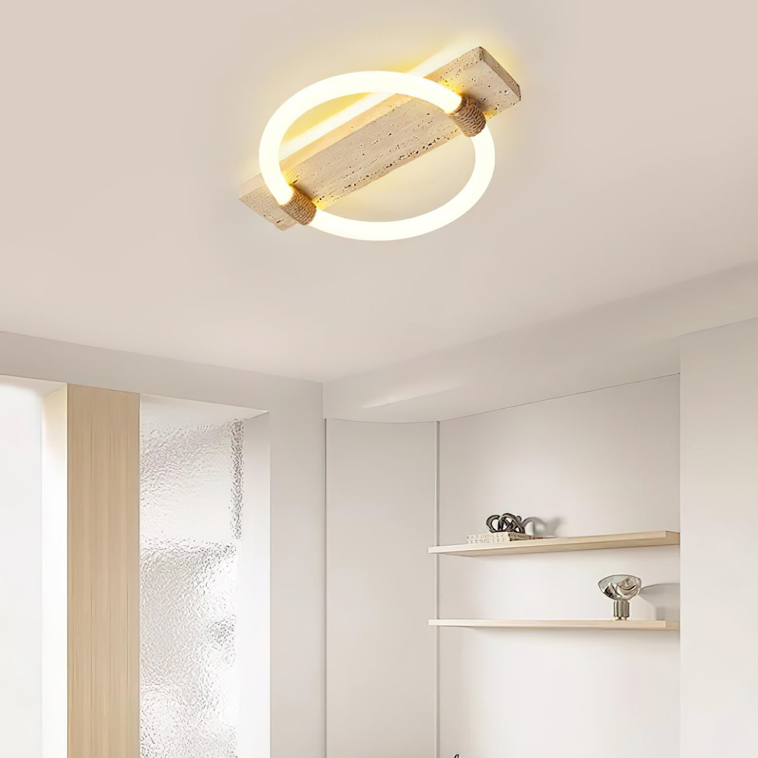 Material: Travertine, Acrylic, Hemp rope.