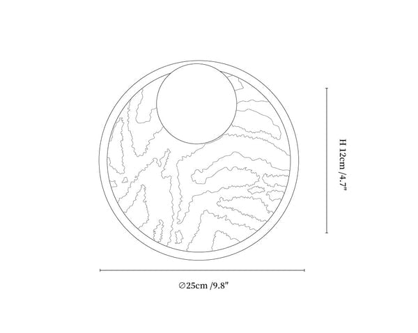 The Strato Orbit Wall Light fuses modern geometry with tactile artistry. A matte globe hovers over a circular frame patterned with textured diagonal stripes in ivory, burnt orange, and deep brown—adding visual rhythm and contrast. Perfect for accent walls, creative studios, or style-forward entryways, this piece brings graphic impact and ambient warmth in one striking silhouette.