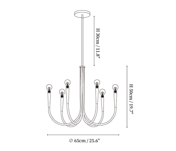 6 heads Size: Dia 65cm x H 50cm / ∅ 25.6″ x H 19.7″