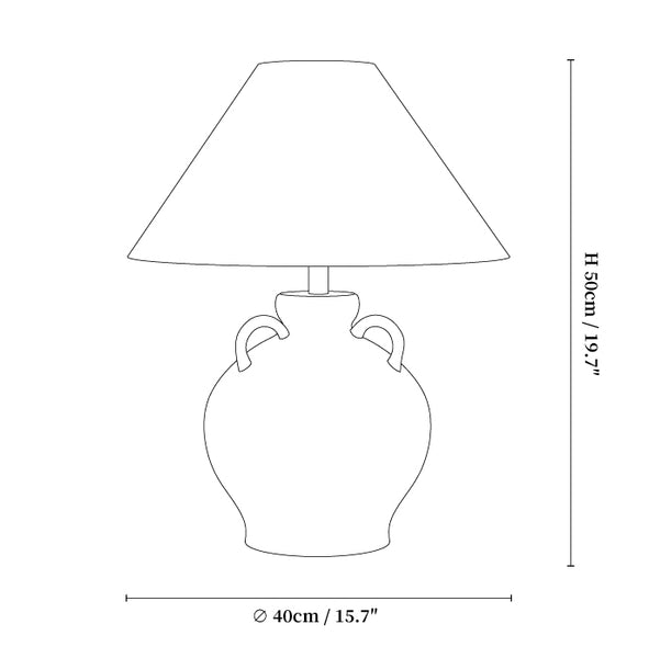 A rustic yet refined table lamp featuring a ceramic base shaped like an ancient amphora. The natural linen lampshade complements the earthy tones, making it an excellent choice for cozy, Mediterranean-inspired interiors.
