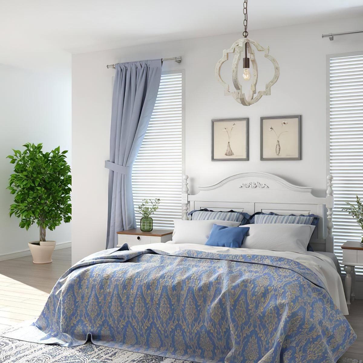 This collection is geometric inspired design and made of ancient weathered wood with dots finish. The wood chandelier features a classic qua trefoil profile that works well in both farmhouse and contemporary settings. This globe chandelier is also accented by rustic light shining a sparkling glow while delivering an undeniable modern farmhouse and vintage charm to your kitchen, dining room, etc.