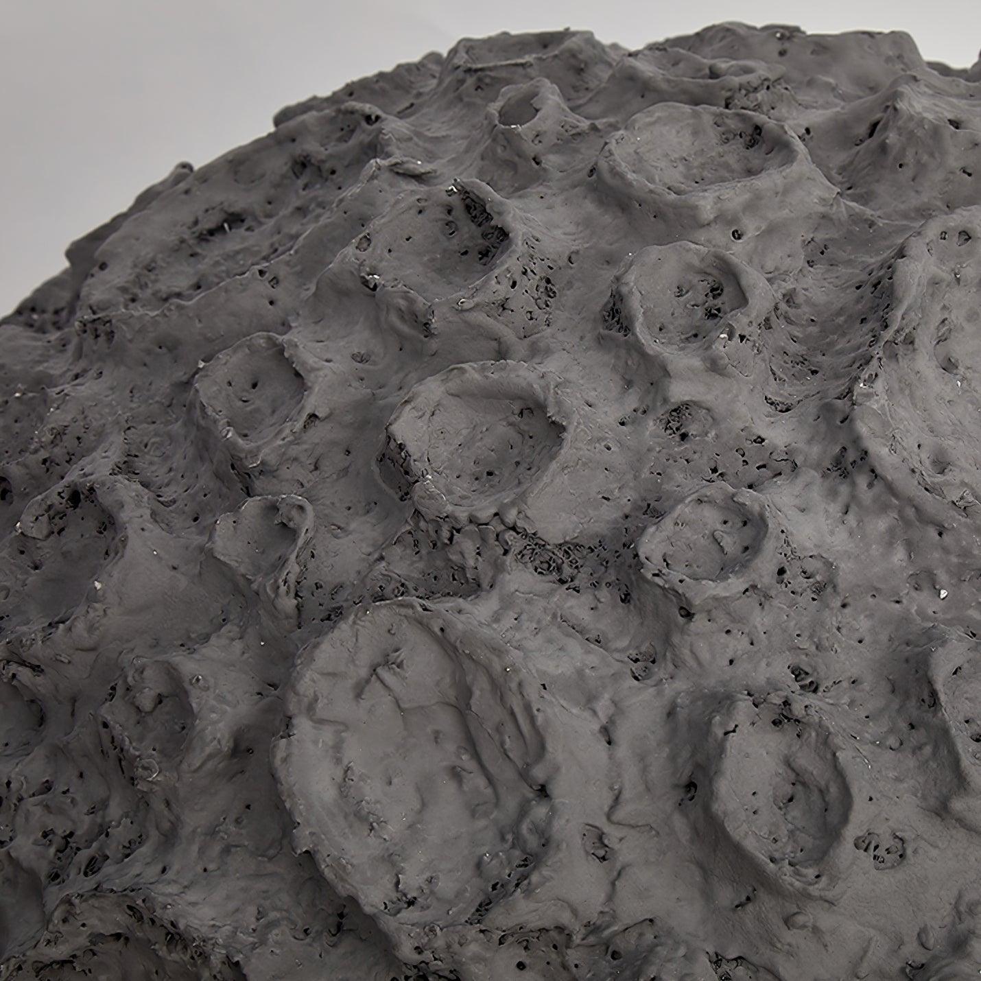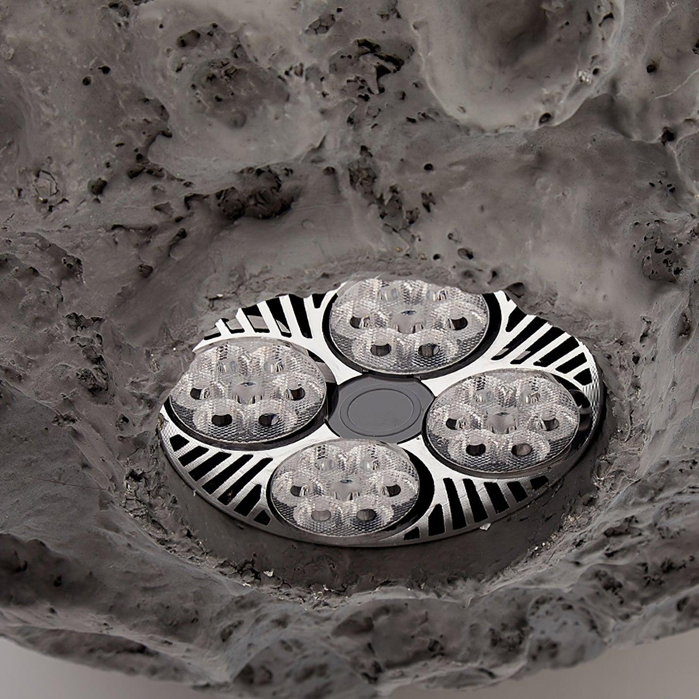 The shape of this pendant lamp refers to the shape of the Earth. Its "core", the light source, brings it to life. When it's on, we'll see a bright, light-filled planet. Its structure - grey, porous and irregular - symbolizes the earth - dry and cracked.