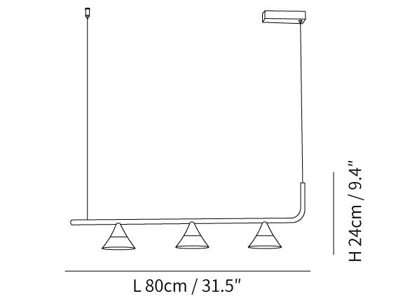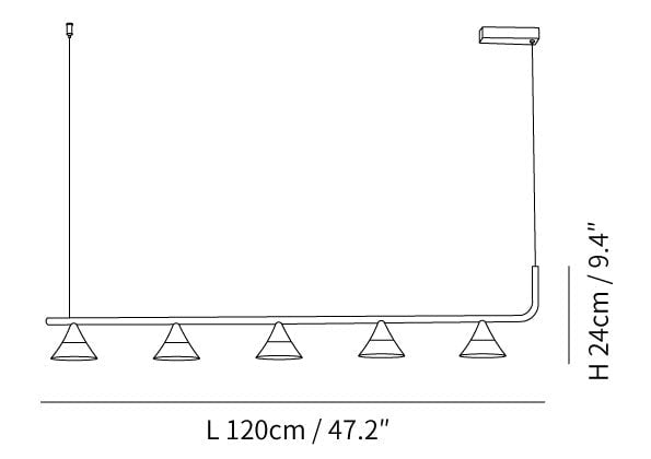 59″ Adjustable hanging height cable. Can be extended upon request.
