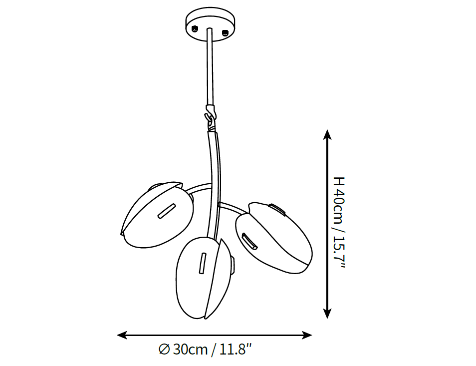 3 Lamps Size: Dia 30cm x H 40cm / ∅ 11.8″ x H 15.7″