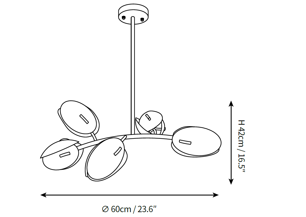 5 Lamps Size: Dia 60cm x H 42cm / ∅ 23.6″ x H 16.5″