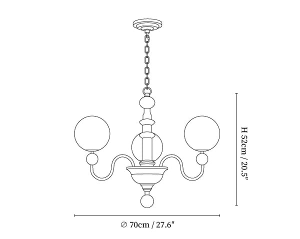 3 heads Size: Dia 70cm x H 52cm / ∅ 27.6″ x H 20.5″