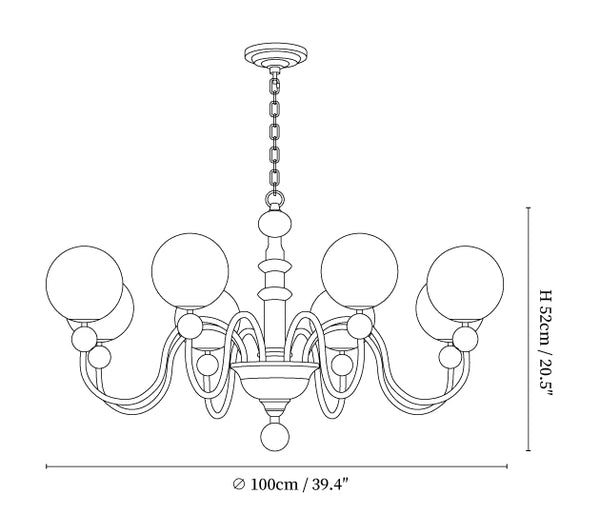 The Vintage Curved Sphere Chandelier merges classic elegance with modern design through its sophisticated blend of materials and shapes. This chandelier features gracefully curved gold arms that cradle frosted glass spheres, emitting a warm, ambient light perfect for creating an inviting atmosphere in any space. Accented with rich walnut wood elements, this piece captures the essence of vintage style while adding a contemporary touch. Ideal for dining rooms, living rooms, or entryways, the Vintage Curved Sphere Chandelier is a stunning addition to any home, providing both aesthetic appeal and functional illumination.