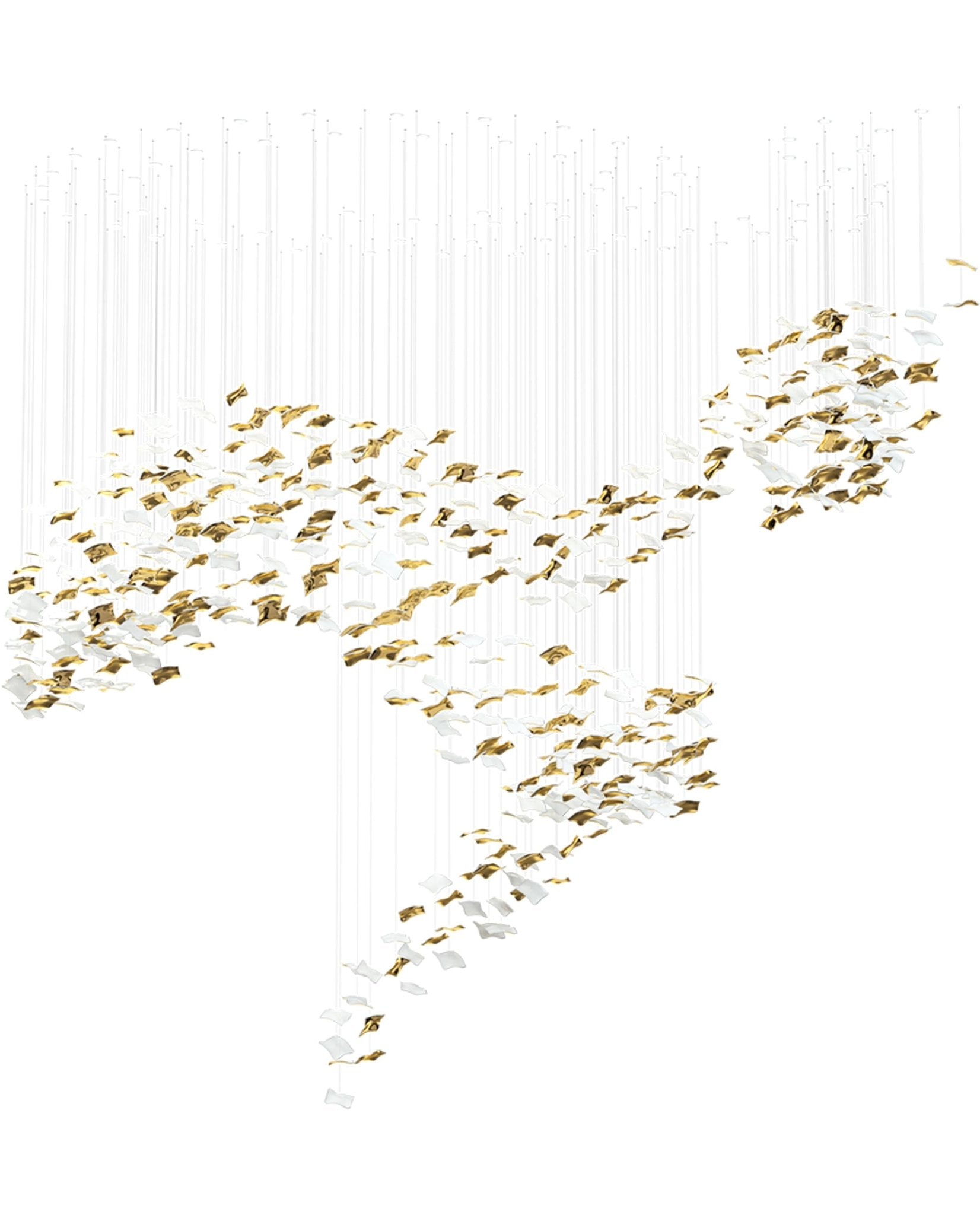 The Whispering Kerchiefs Collection captures the delicate beauty of kerchiefs caught in a gentle breeze, effortlessly elevating your decor with a touch of elegance. Each hand-blown opal glass piece floats gracefully, creating a sense of lightness that enchants any space. The contrasting metal finish adds a bold accent, enhancing the refined aesthetic of the design. Perfect as a captivating focal point, the Whispering Kerchiefs Collection brings a stylish and sophisticated ambiance, transforming interiors with its graceful form and artful craftsmanship.