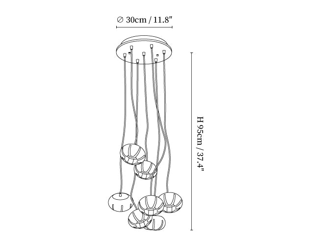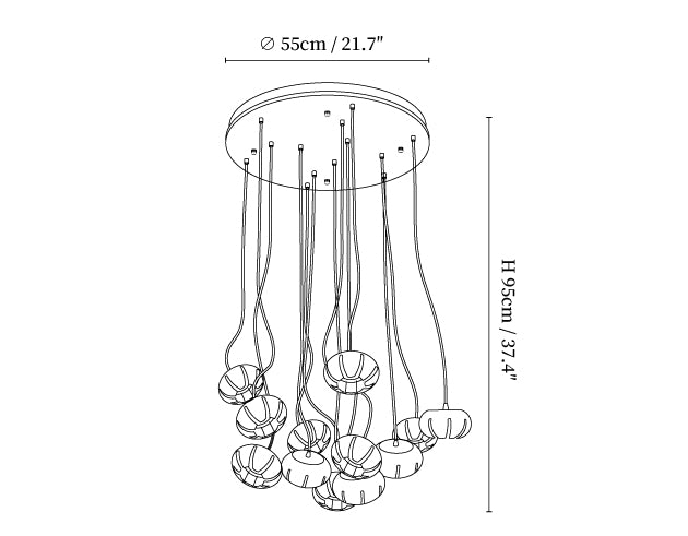 13 heads Size: Dia 55cm x H 95cm / ∅ 21.7″ x H 37.4″