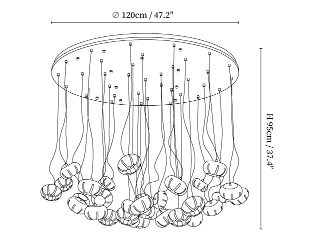 37 heads Size: Dia 120cm x H 95cm / ∅ 47.2″ x H 37.4″