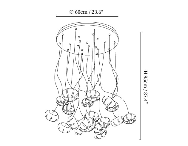 19 heads Size: Dia 60cm x H 95cm / ∅ 23.6″ x H 37.4″