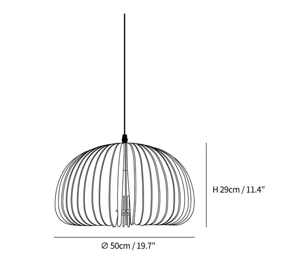 Crafted with precision, it features concentric circles of delicately curved wooden slats that form a globe, enveloping the light source within. This design not only creates a stunning visual impact but also allows for a dramatic play of light that spills through the gaps, casting a warm, dappled glow reminiscent of sunlight filtering through forest leaves. The pendant's metallic fixtures provide a sleek contrast to the wooden elements, enhancing its contemporary appeal. Ideal for spaces that seek to blend natural woodwork with modern decor, the Luminous Wooden Orb Pendant is a bold yet elegant lighting solution that becomes the focal point in any room it adorns.